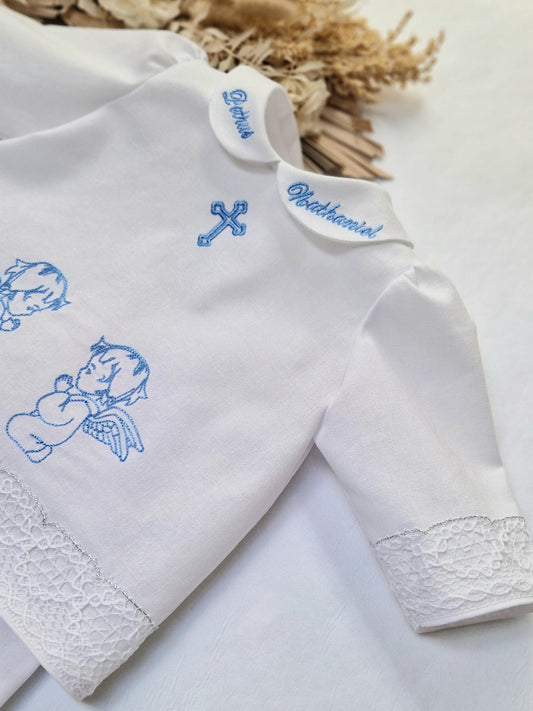 Taufanzug GABRIEL aus feinem Halbleinen, für Jungs und Mädchen, individuell bestickt