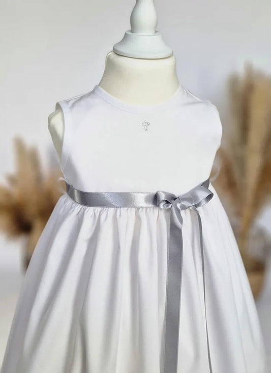 MICHA Taufkleid ohne Ärmel für Junge Mädchen, SWAROVSKI, Baumwolle, schlicht