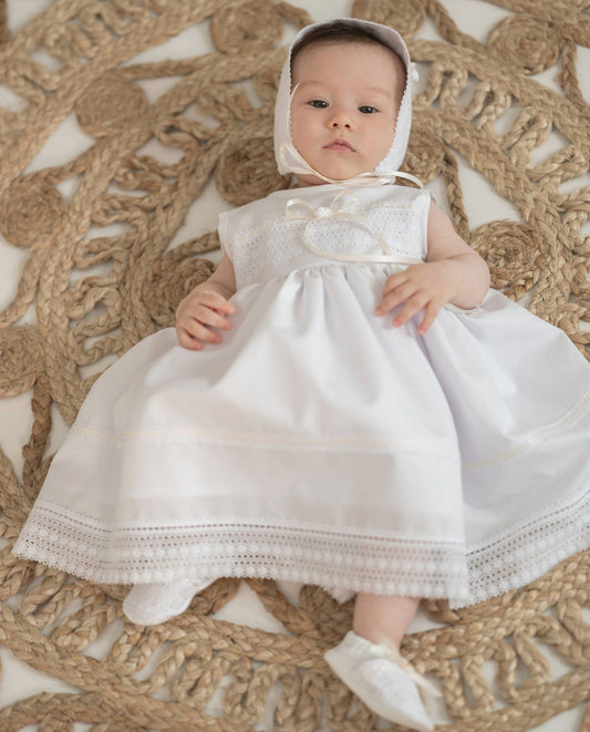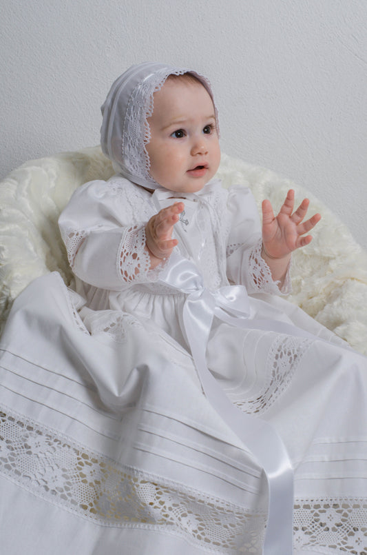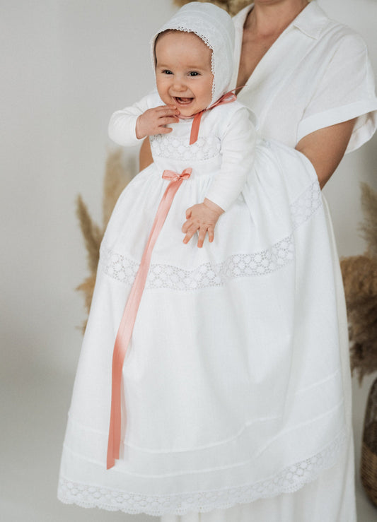 ELINA Taufkleid mit Mütze für Mädchen und Jungs, Baumwollbatist, vintage