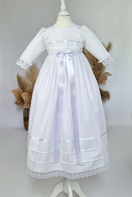 LINA Taufkleid für Mädchen, Baumwolle, Baumwollbatist, Blumenmädchenkleid
