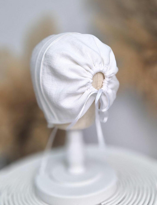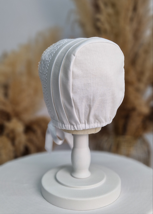 Taufmütze MARINA mit Spitze für Jungen und Mädchen aus Leinen