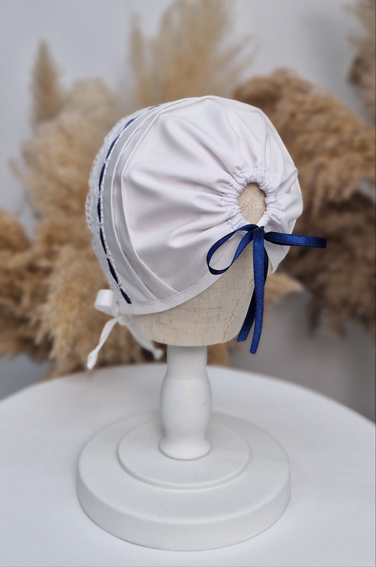 Taufmütze LEON mit Spitze für Jungen und Mädchen, Baumwolle, Taufhaube, Mütze für Taufe