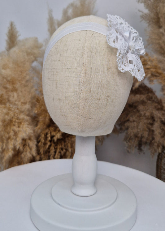 Stirnband MARIA mit Blume aus Spitze, Haarband für Mädchen Taufe, Hochzeit