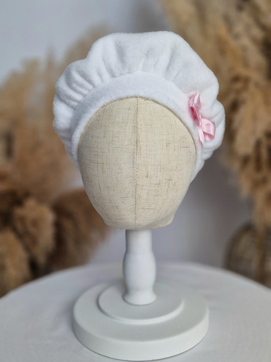Taufmütze für Jungen und Mädchen, Fleece, Taufhaube, Mütze für Taufe weiss, Baskenmütze